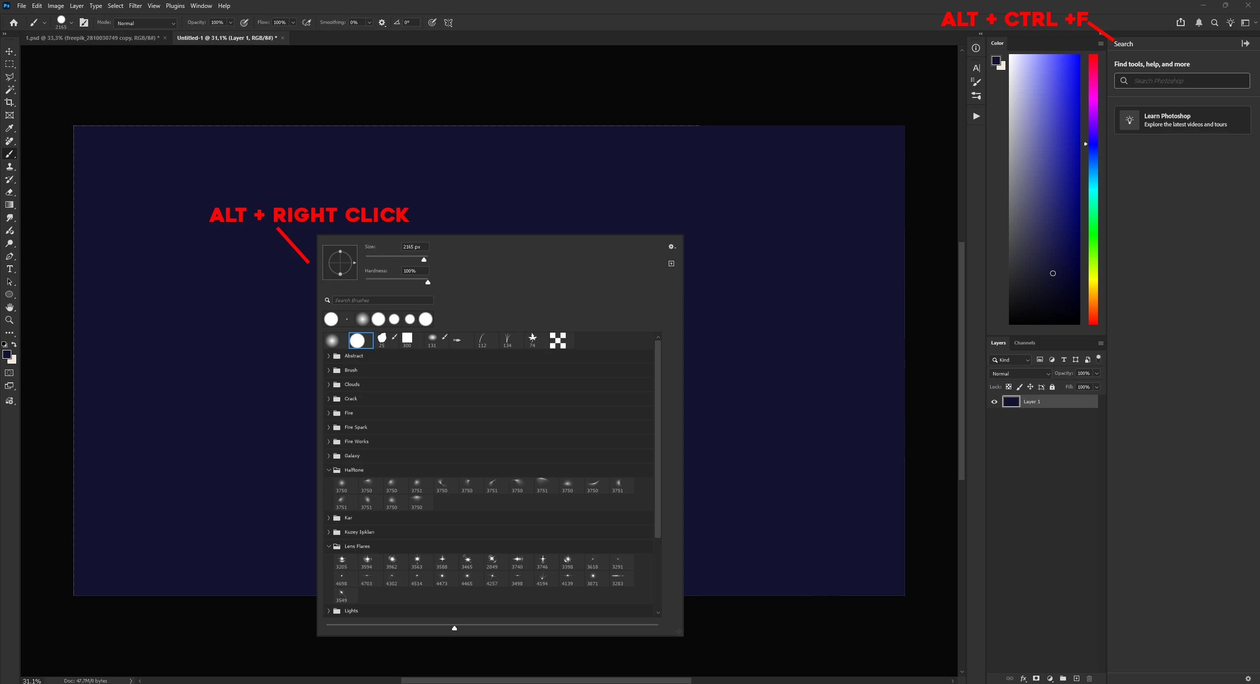 Altkey opens tool settings or UI pop-ups instead of switching to the Eyedropper for color picking. - Filter Shortcut: The
