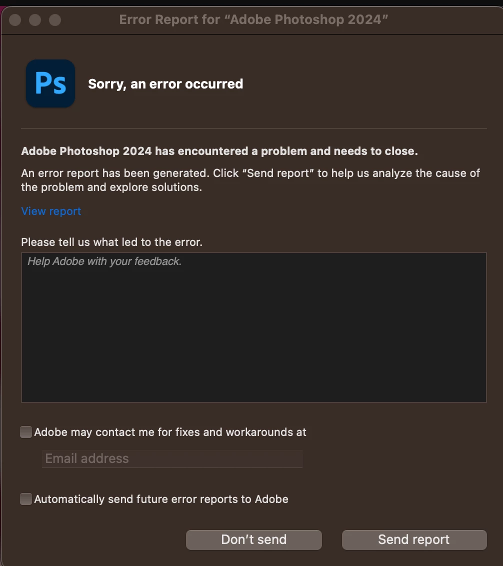 PS crashes over and over and over. It's _REALLY_ tiresome