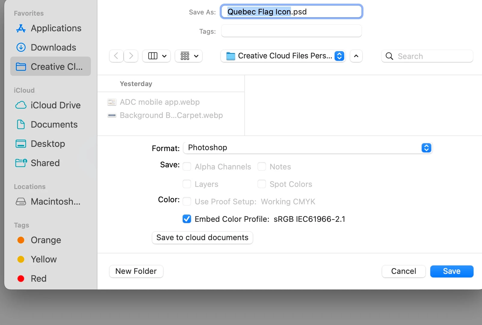 2. Save A Copy (save to creative cloud)
