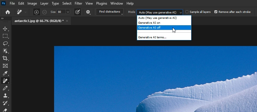 remove tool not working well in photoshop 26.0.0 when i try to remove a specific area in a images it takes too long to process and create a whole area around the images with some clumsy textures anyone can help ? i am using windows 11