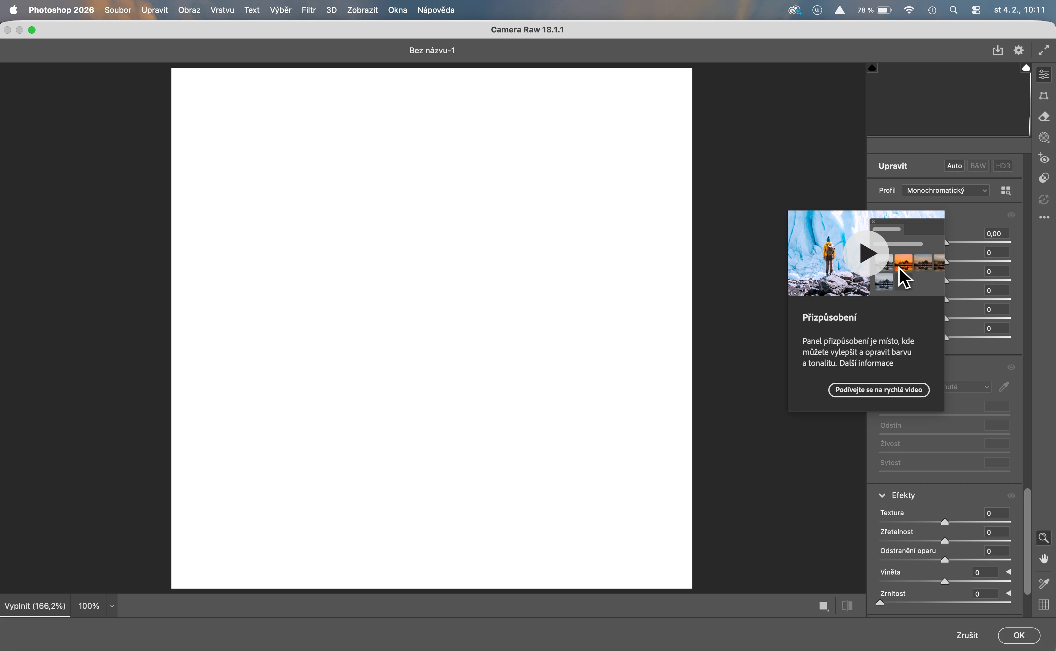 - a pop-up tip for Adjustments/Přizpůsobení should appear (adjust slightly mouse position if not)