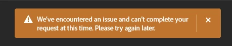 When using Generative Expand I get the error "We'd encountered an issue and can't complete your request at this time. Please try again later." I've restarted and updated to the latest photoshop.