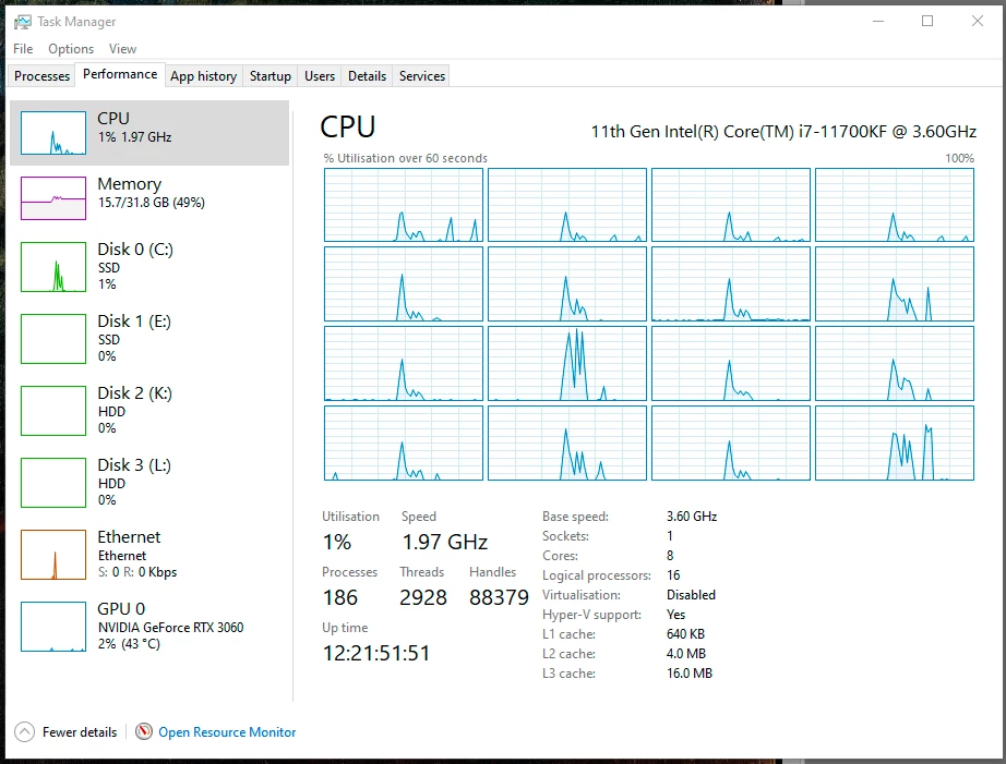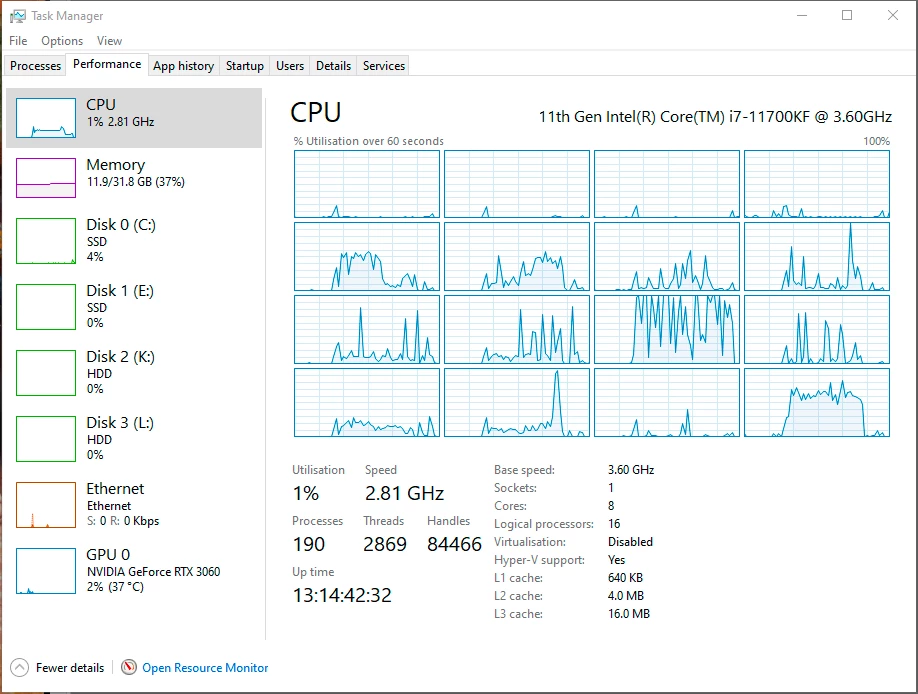 I also made edits to each file and saved them all simultaneously. I watched activity monitor to see thread activity and throughput.