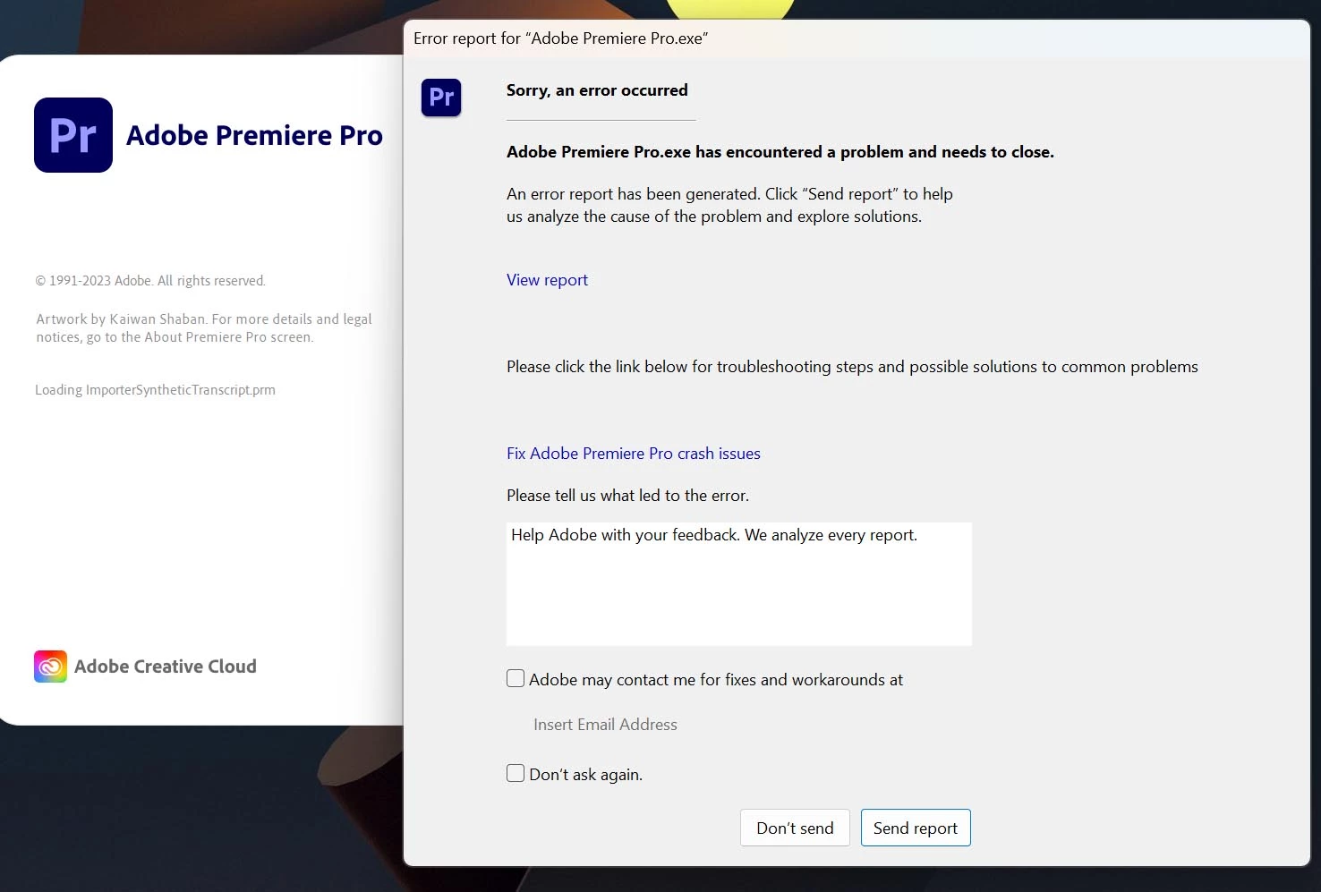 Adobe Premiere Update 23.4 Crashes at Start Up