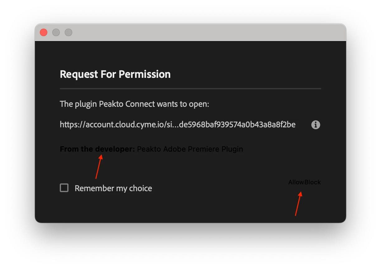 We have an UXP plugin that creates a connection with a remote server. In doing so, we need to open a web page for login. Premiere opens an Permission Dialog to request permission to open that page...but the displayed dialog has a faulty rendering of :