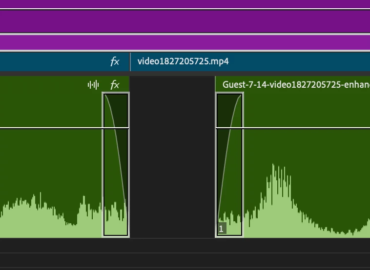 I'm attaching a screenshot of a fade down that sounded glitchy. These were originally 1 frame transitions. I tried changing to 2 frame transitions and the audio still glitched on export. However, I was more likely to hear it clean on playback with the 2 frame transition.