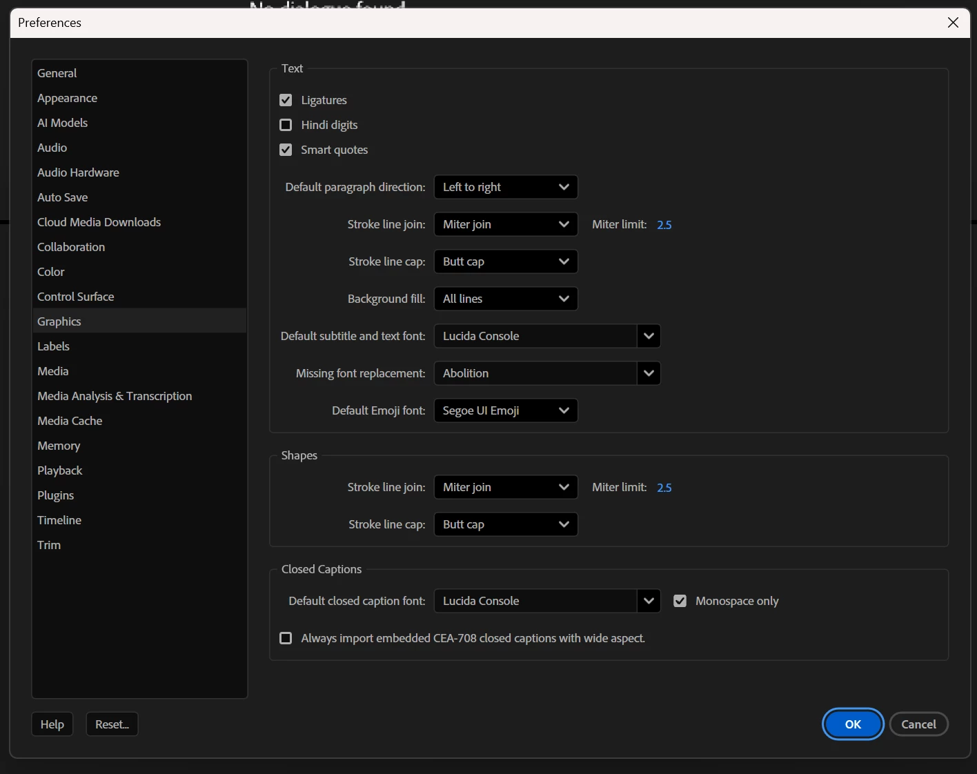 Can you share screenshots of your preferences the "Media Analysis & Transcription" and the "Graphics"