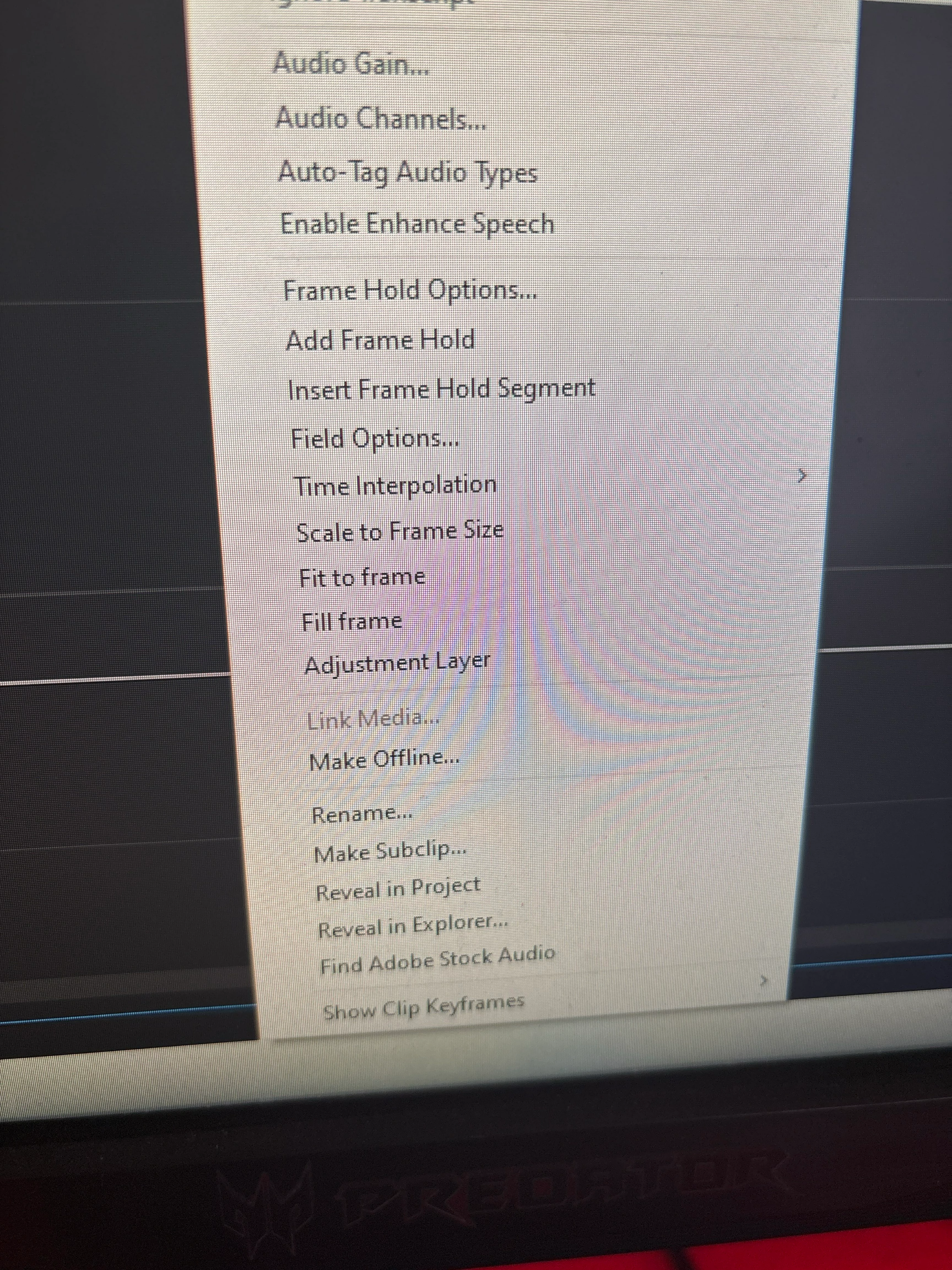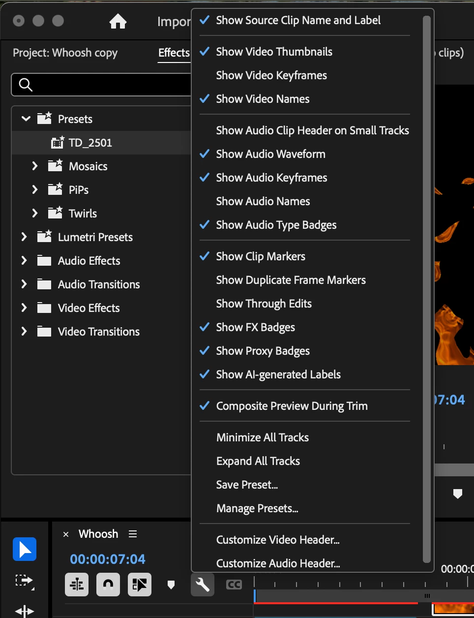 🔹 "Right-click context menu truncated in floating Timeline panel — options like 'Show Clip Keyframes' are missing"