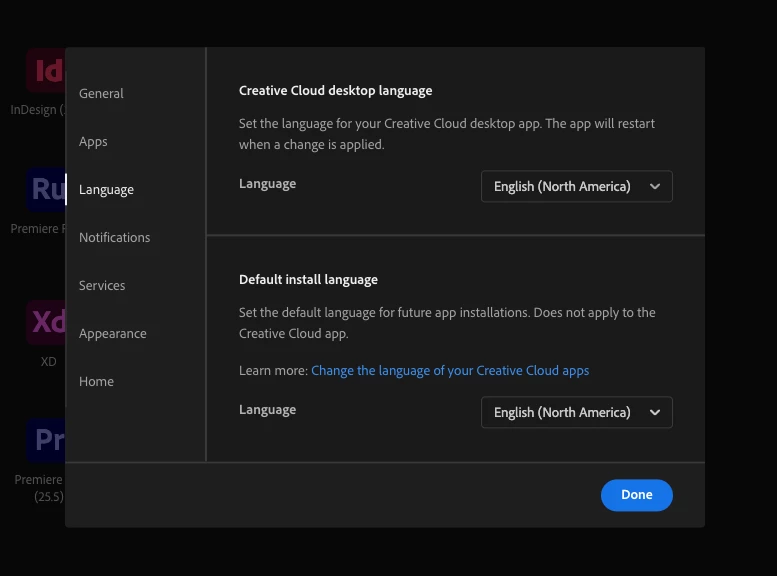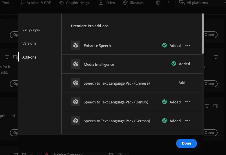 I didn’t add any extra language, but Premiere Pro automatically adds another language when I open the app.