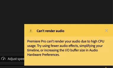 No audio rendering issues or warnings occur in Premiere Pro 25.1 or earlier