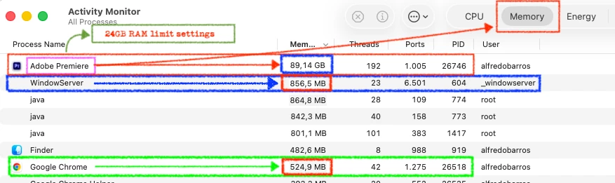 The Issue: While performing standard editing tasks (proxy workflow, no heavy VFX), Premiere Pro's memory footprint expands uncontrollably. In my most recent crash, the application reached 89.14 GB of memory usage on a 48GB machine, forcing the macOS kernel to create an 80 GB Swap file.
