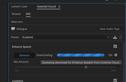Enhance speech module at the Premiere Pro not downloading