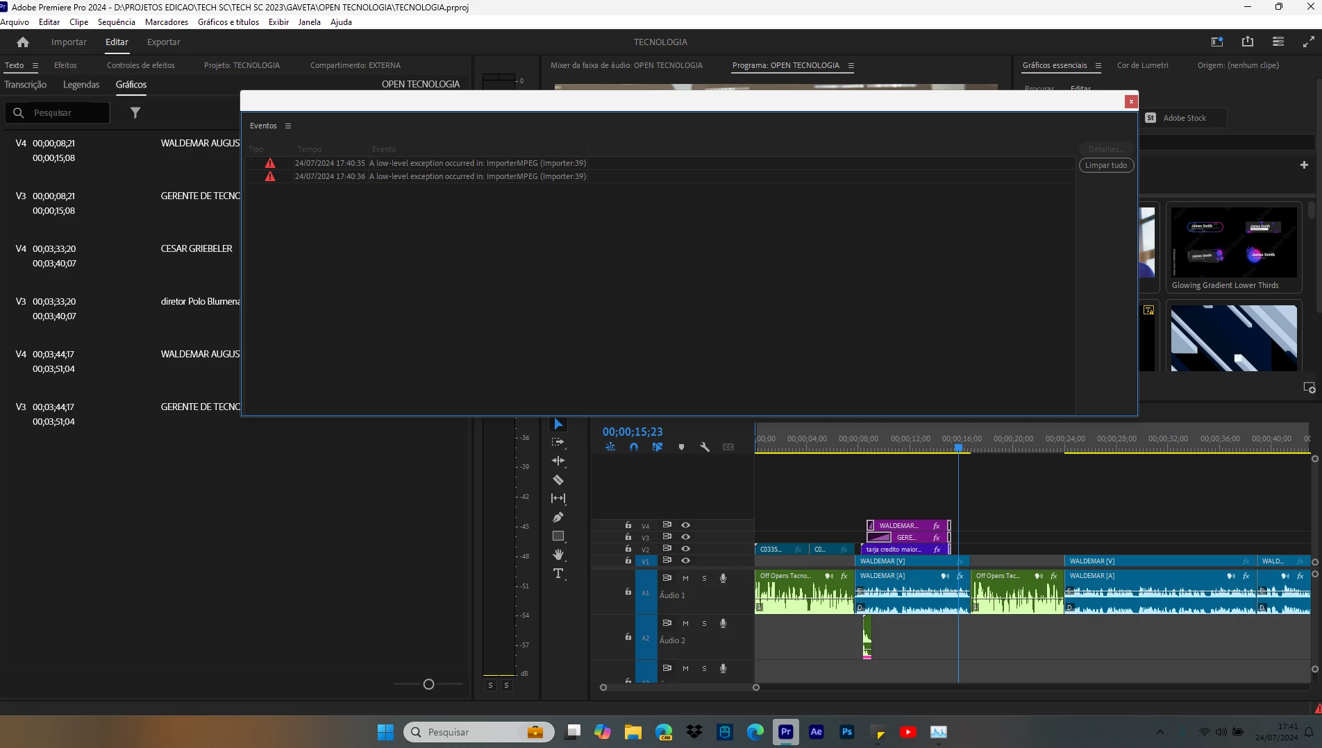 Como vocês estão? Estou tendo um problema há algum tempo, tenho uma assinatura da Creative Cloud e meu Adobe Premiere ultimamente tem me aprersentado lentidão e travado o programa.