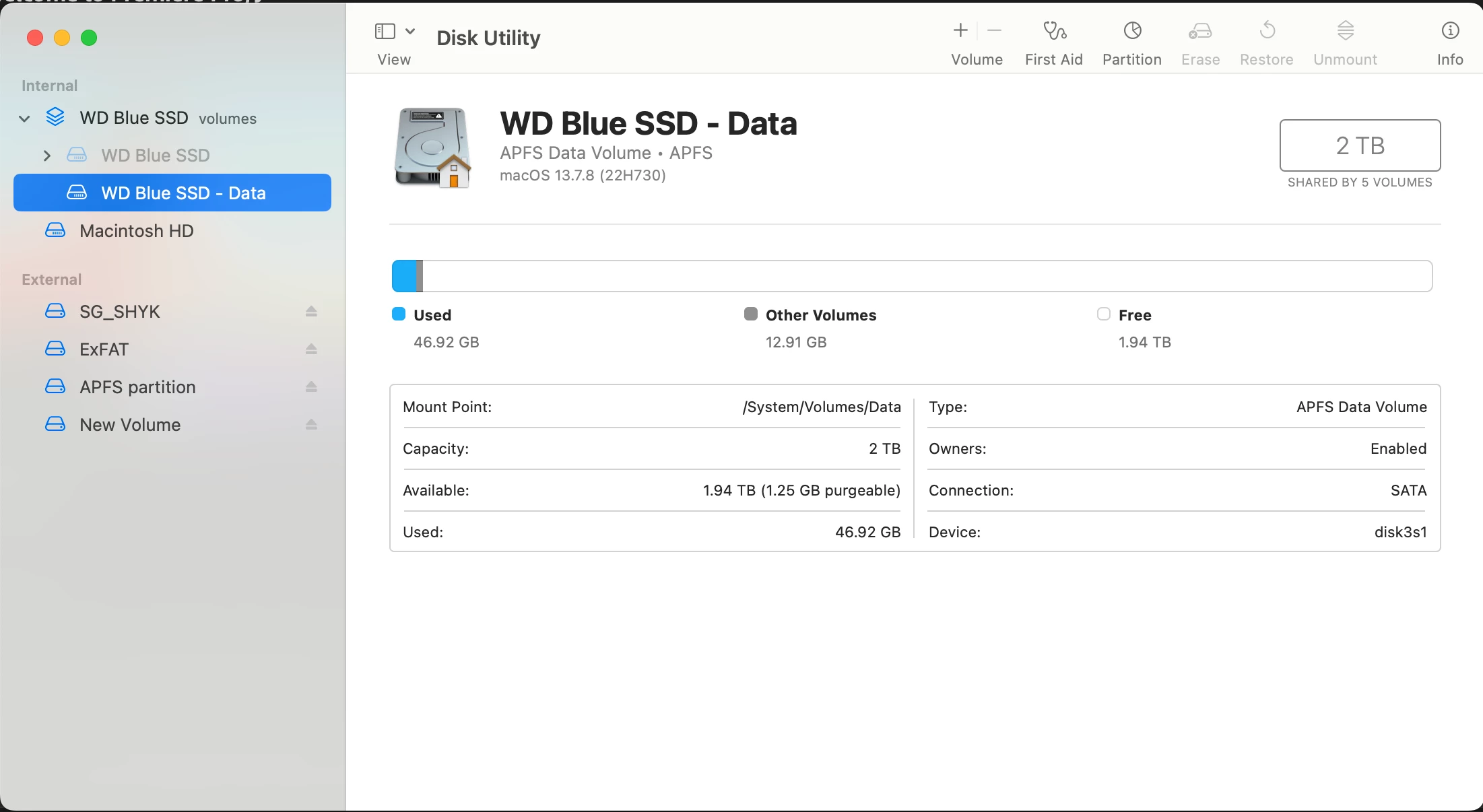 Lastly, I came across a forum thread where someone mentioned installing the MacOS on the same internal SSD. I am unsure whether the service centre personnel installed the OS on a separate partition, therefore have shared screenshots of the Dis Utility specs as well.