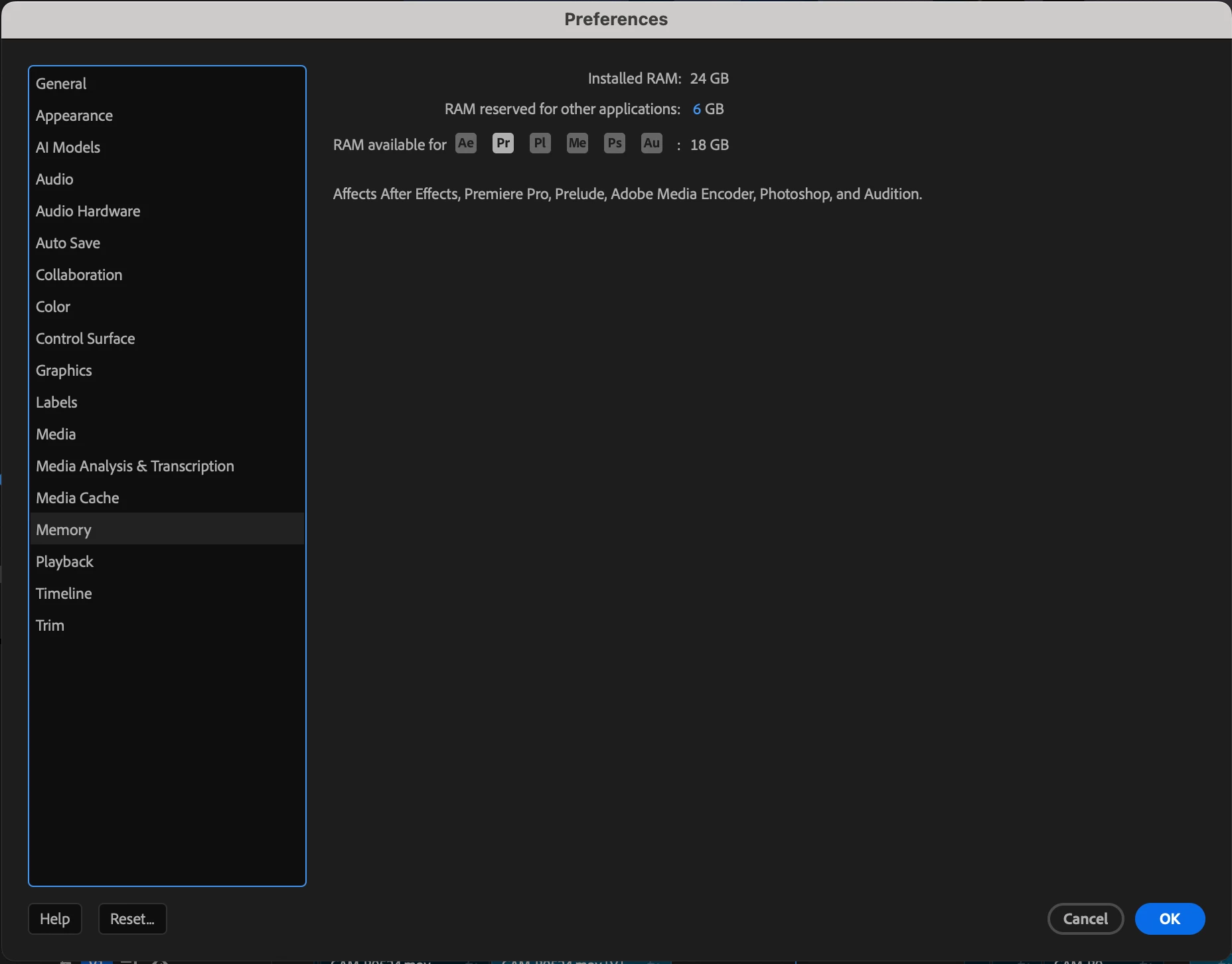 Meanwhile, I resumed my edit on a rented Macbook Air M1, 2020 (8GB). Mid-project Premiere Pro auto-upgraded from v25.6 to v26 and I continued editing till 2 days ago. The rental period lapsed and I had to return the Macbook Air and resume working on the serviced and upgarded iMac.