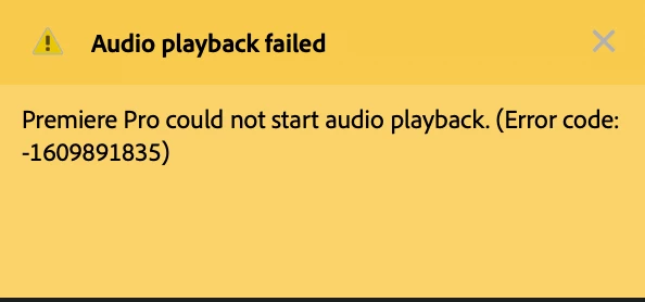 Error code: 1609891835 - Premiere Pro could not start audio plaback.