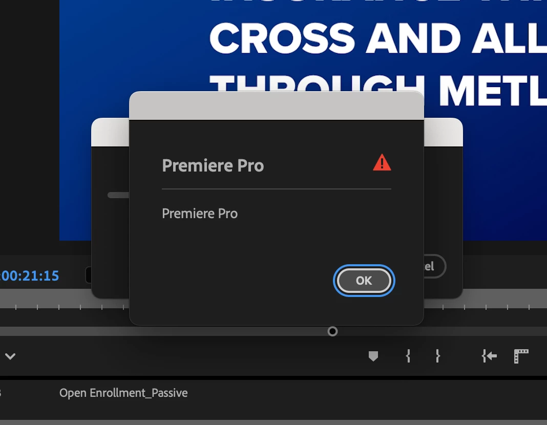 I've been using premier pro for years, since i updated it I cant export anymore. As soon as i click export i get the attached message immeditily. It doesnt even try to export it, just gives me the error message. Been searching for a fix but getting no results. There is no info on the error message, just this blank !  I need to get this fixed and premier hasnt released a new update to fix it in ages! Anyone else had this issue?