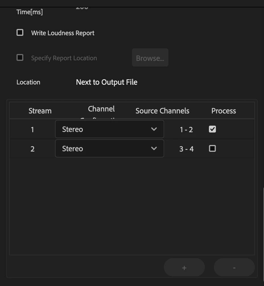 Loudness normalization failed as the number of channels in the audio channel configuration Stereo does not match the 4 channels provided by the source.
