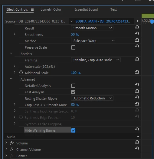 The guys in this topic here say that with Render and replacing the Warp Stabilizer effect does not work, but in Premiere Pro 24.6.1 I can clearly see my footage stabilized (see the attached video) and I still get this warning banner. Why? What's its purpose there? Why does it even show if the clip's length remains unchanged?