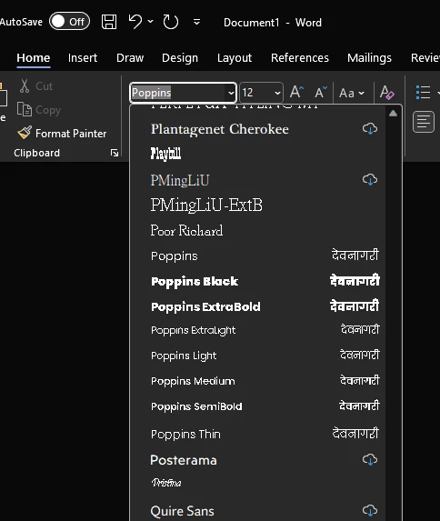 Uninstall, downloaded Poppins font online, installed in Windows itself > then Premiere Pro does not see ány font.