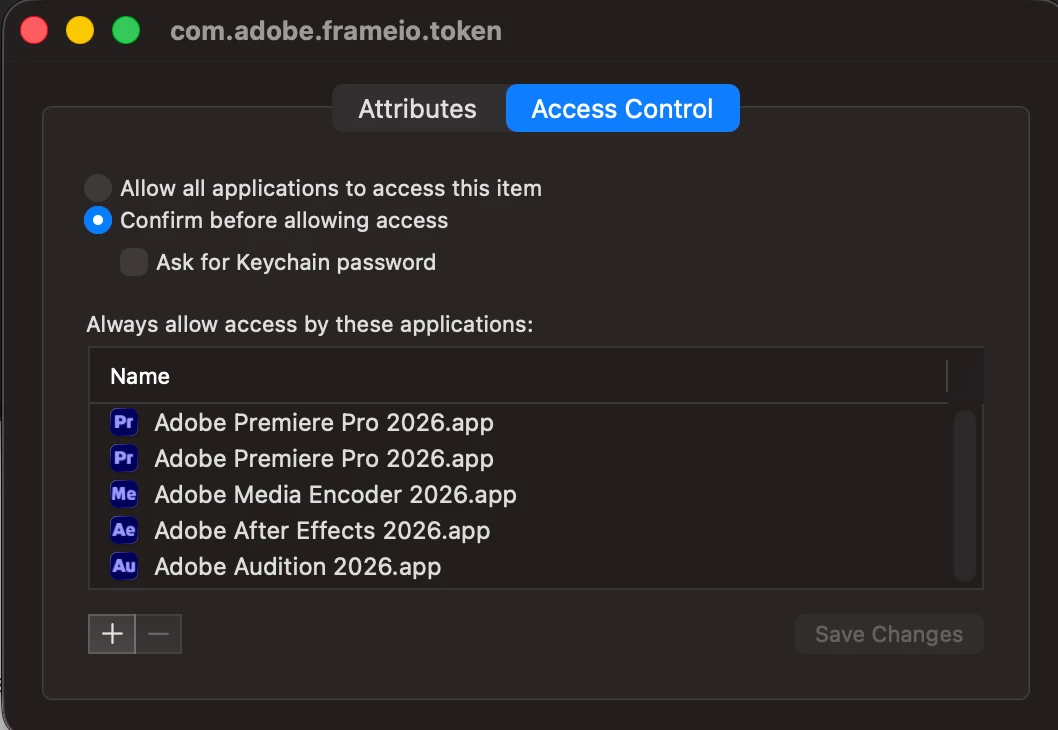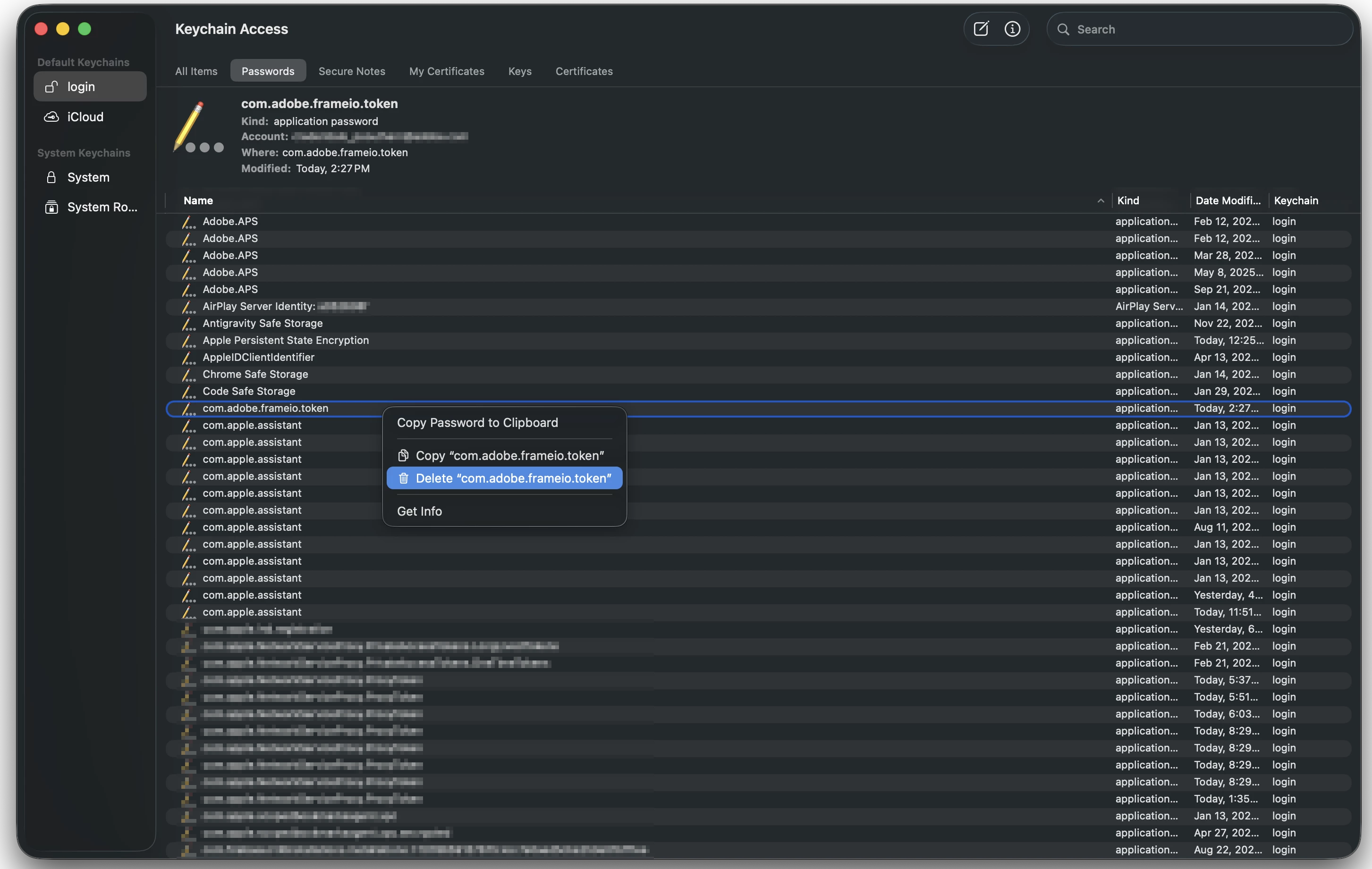 - Under ‘Login Items’, scroll down to ‘com.adobe.frameio.token’