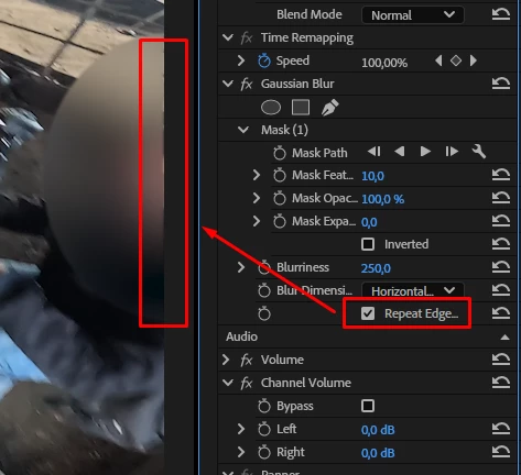 Gaussian blur effect not working on edges of a clip