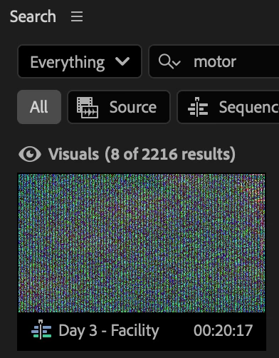 After updating to Premiere 25.4 now all thumbnails in the markers panel as well as the search panel are glitched/distorted. Was working fine prior to update. When scrubbing over shots in the search panel hover scrub works fine but then goes back to the glitched image when moving off of it.