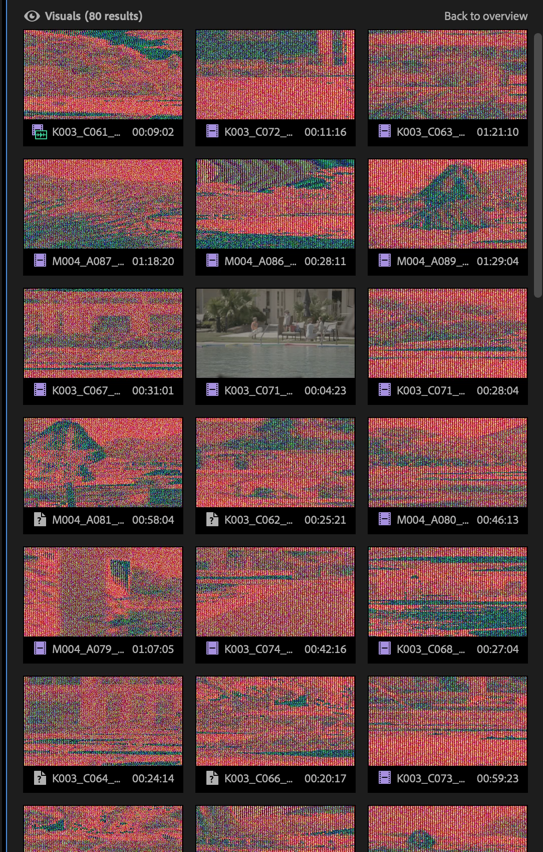 Having the same issus. Just updated to 25.4 (build99).  The AI search tab.  mostly RED files and some Mavic 3 pro.   the thumbs will display propery if I roll over the thumbnail.  I dumped and deleted cache and did a restart.  Any help would  be great. Make my search tool a bit clunky.