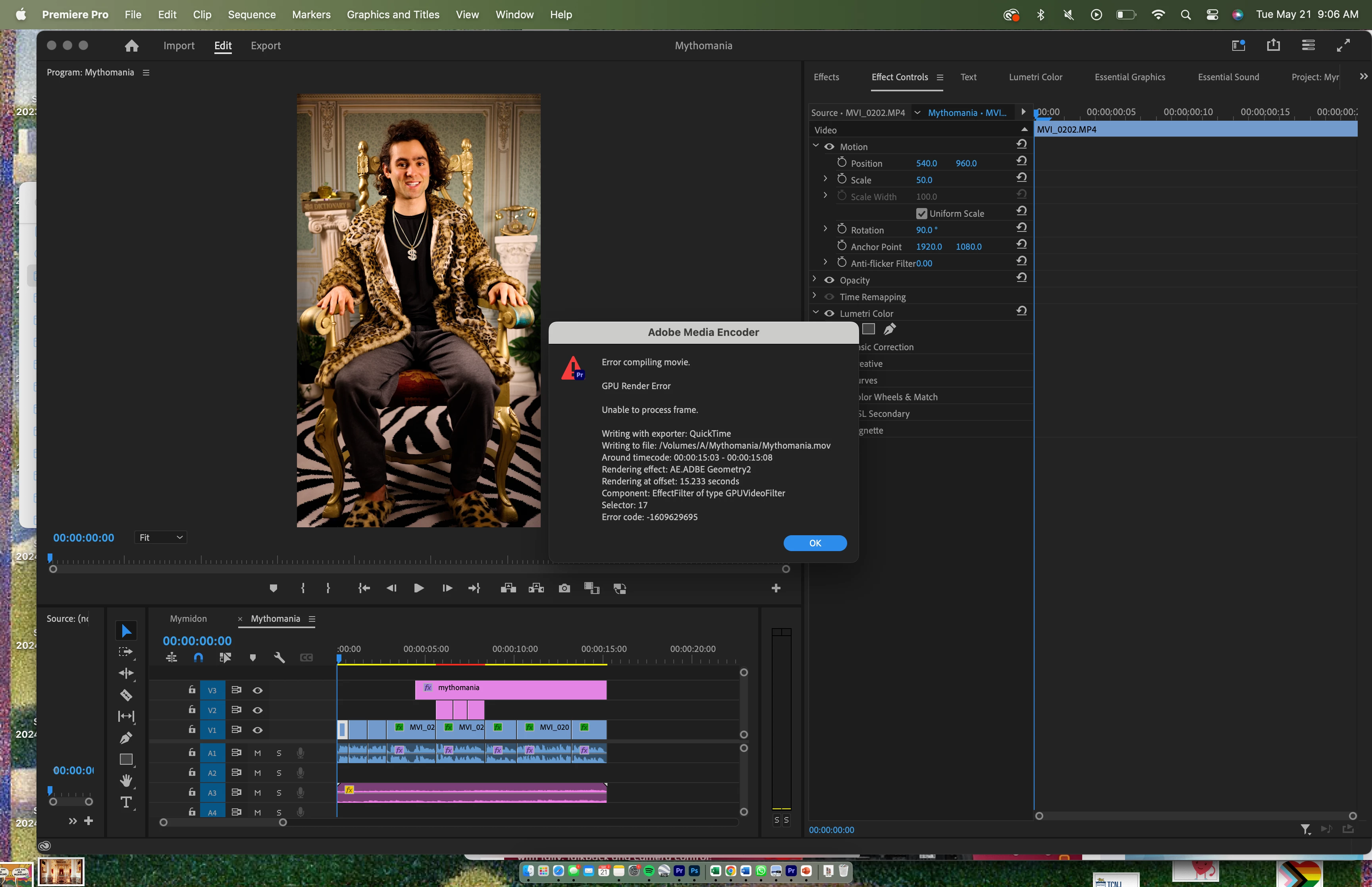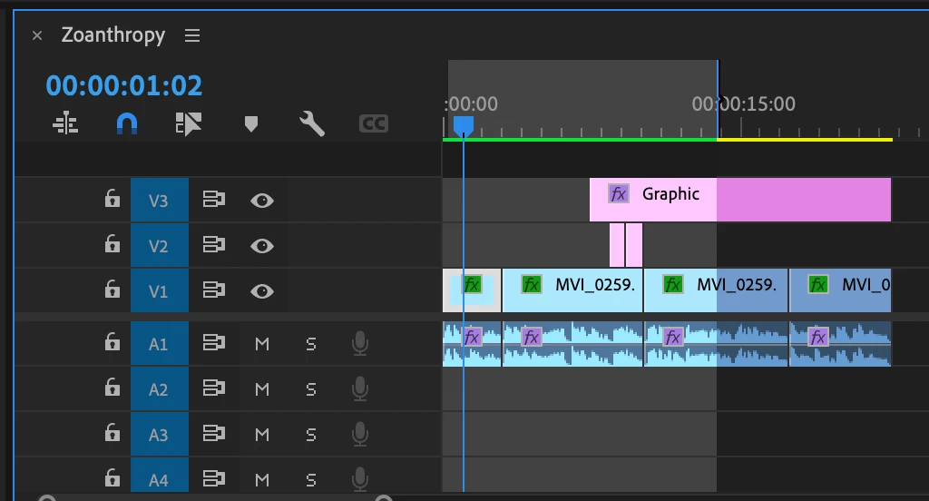 This is causing the GPU Render Error and the last 20 frames of video to go black in Adobe Premiere playback. Here is a look at my simple timeline: