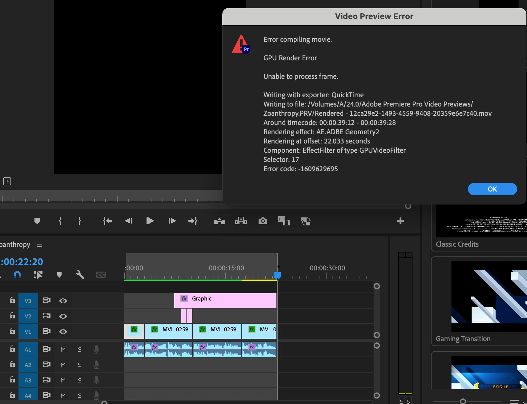 GPU Render Error (-1609629695) for Simple Caption Motion Graphic