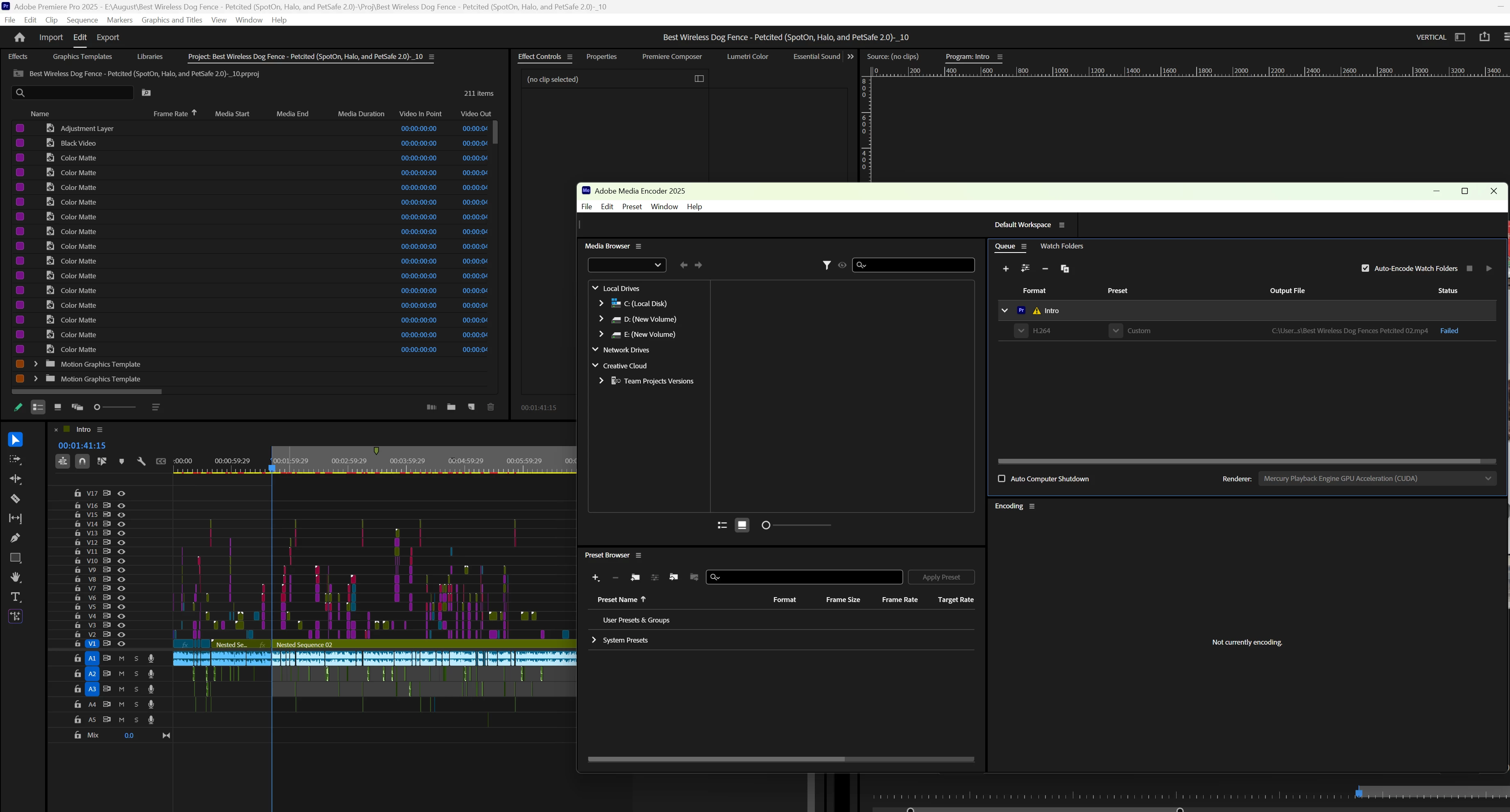 Each time I attempt to export longer videos — whether through Premiere Pro directly or via Media Encoder — the application closes unexpectedly without any error message, and the export process fails.