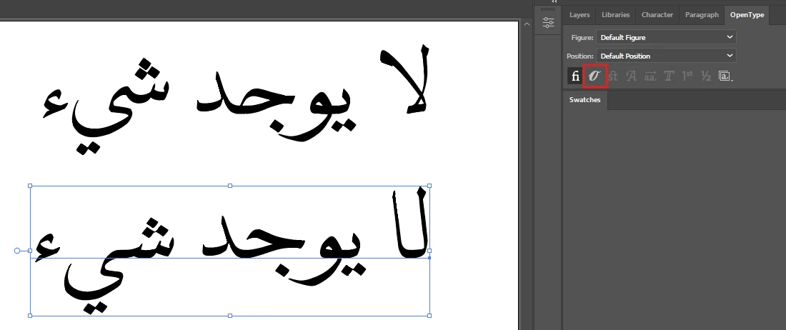 the problem is, when i write "lam alif", the ligature doesn't work properly. even though i have turned on the ligature feature.