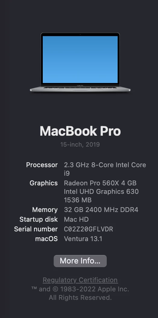 Platform and OS: Macbook Pro, 2019, os ventura 13.1
