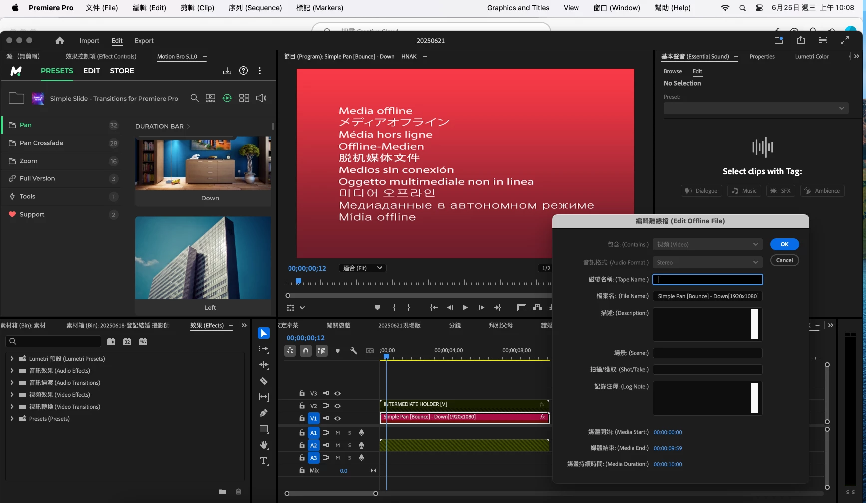 "I’ve confirmed that I followed all the installation steps as instructed, but when using the plugin, a 'Media Offline' error appears. Everything else in the software seems to be functioning normally. Could it be that the downloaded preset pack needs to be placed in a specific folder within Premiere Pro?"
