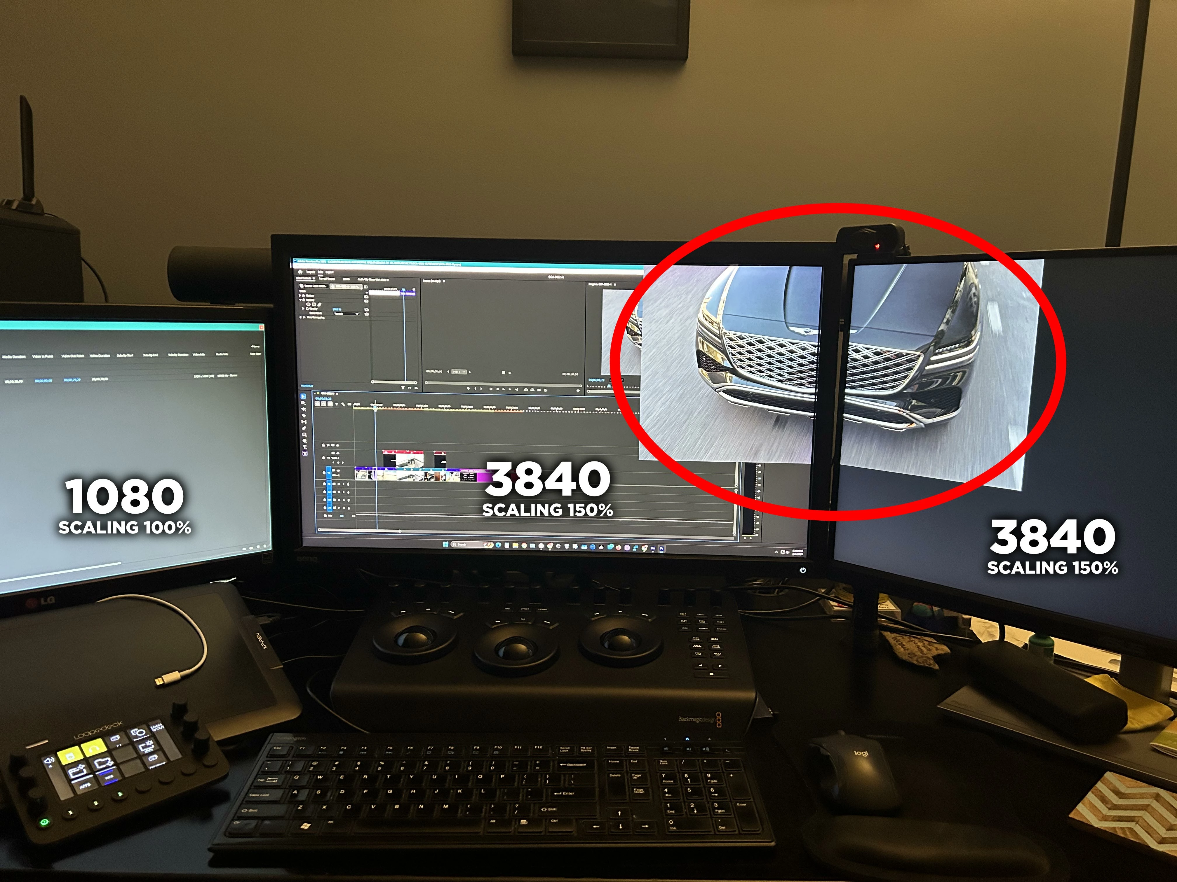 I have a 3 monitor setup (see attched image) all connected to my Nvidia GPU. The two on the right are 3840 res using Windows 11 scaling to 150%. However my left monitor is only 1080 so it needs to be set to 100% scaling. When using mercury playback for the far right monitor, it will merge with the center. I know the issue is my left screen and mismatch of scaling, BUT it's a 1080 screen that needs to stay in 100% scaling. If I remove any panels from that side and minimize/,maximize PP, the mercury playback outputs correctly to just the single screen like it should. I am hoping to bring awareness to this so that it can hopefully get resolved for us users who want to take advantage of the screen space and using different resolution monitors.