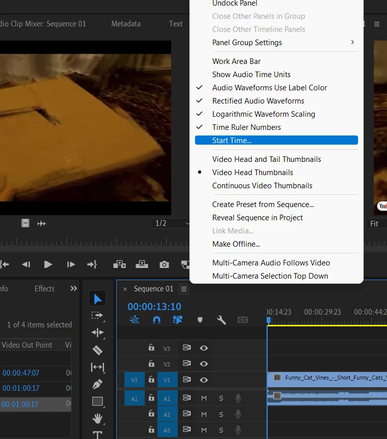 Select "Start Timecode" option from the Timeline Humberger menu, then change the Timecode value to a desired value. If you open the sequence on any monitor or export a clip, the start timecode value will be visible.