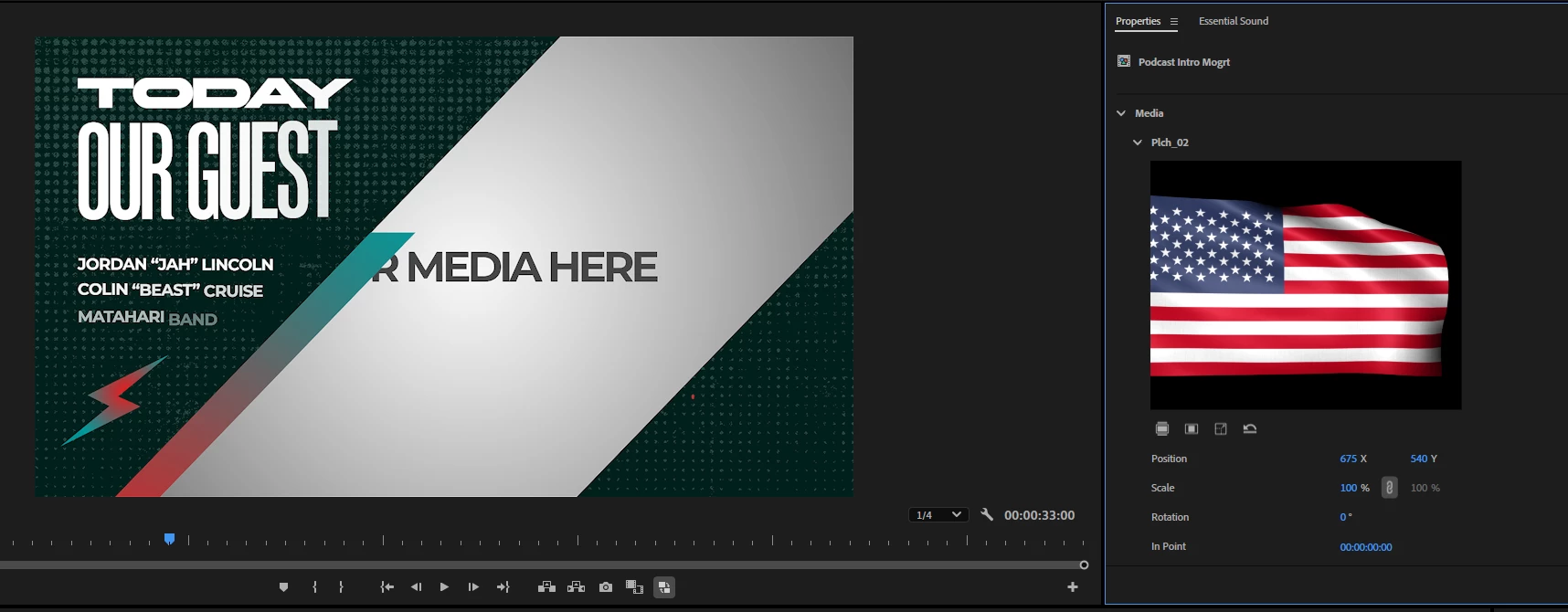 The problem is that I have a mogrt file installed and it has a window for inserting media, I insert a photo and it doesn't display, it doesn't change anything. Also i try to make this in properties - no effect