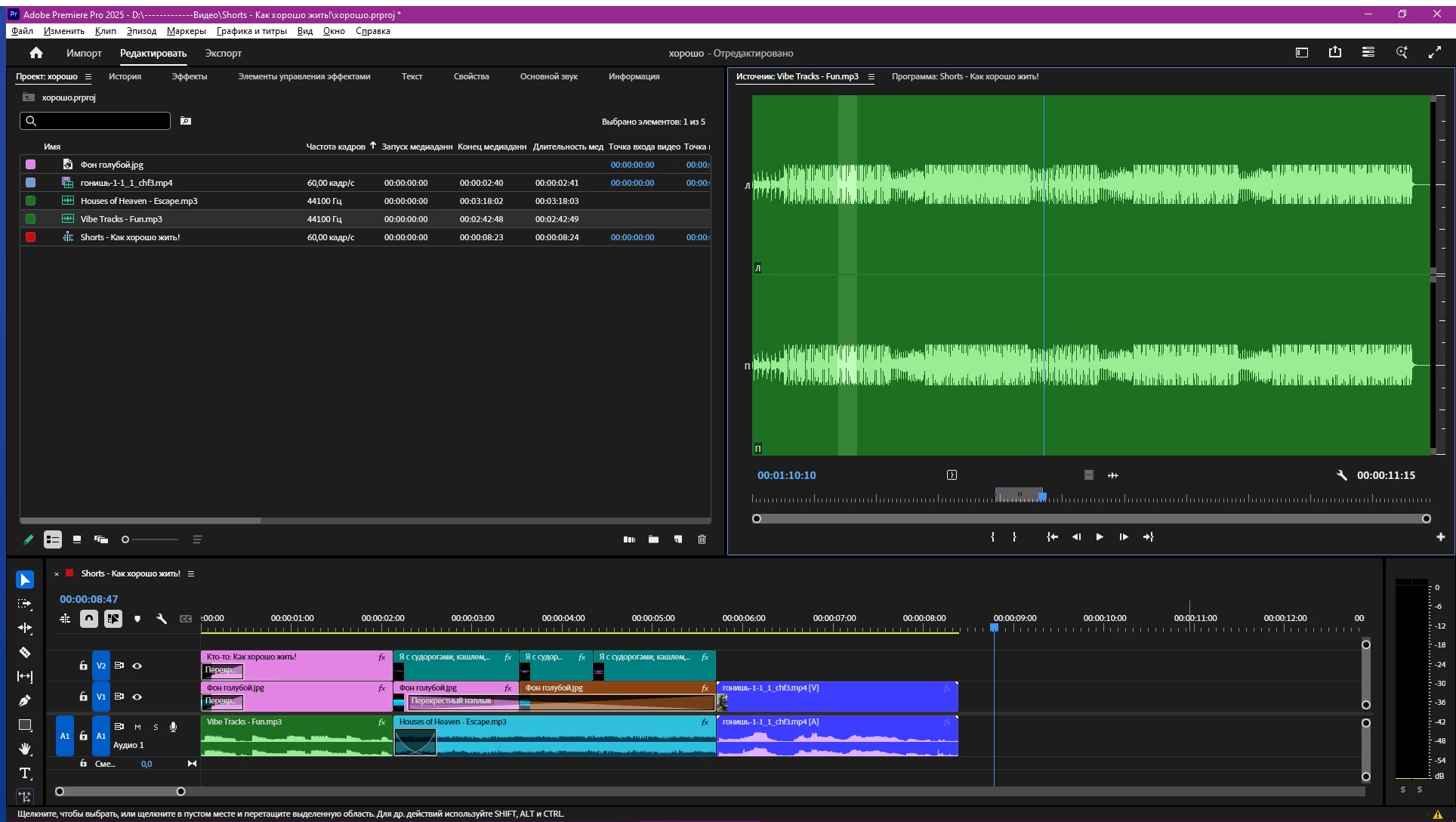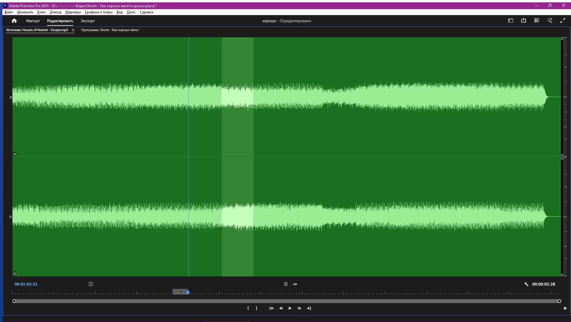 When I select a fragment of audio in the program, it is not selected graphically in the audio wave window, but only at the bottom. However, when dragging it to the timeline, everything seems to be fine. Program version 25.3.0, Windows 10 22H2 19045.3570. I selecting with buttons I and O on keyboard and dragging on sequence 1080x1920p60. Audio file is mp3.