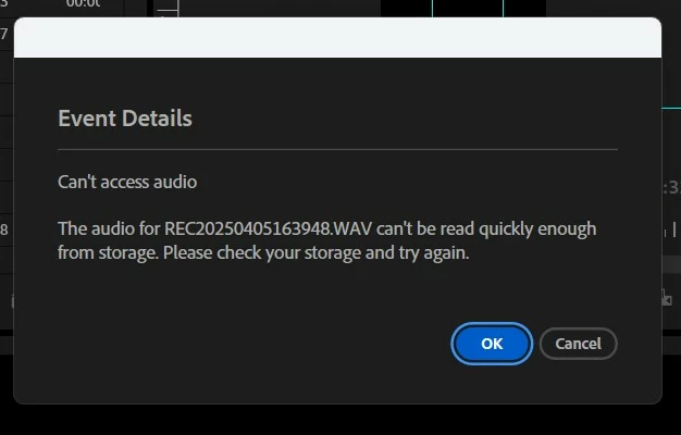 the audio for _____.wav can't be read quickly enough from storage. Please check your storage and try again.