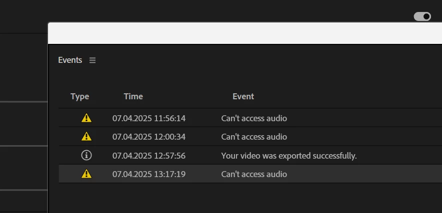 I am getting this audio error almost in each project with different .mp3 and .mp4 files.