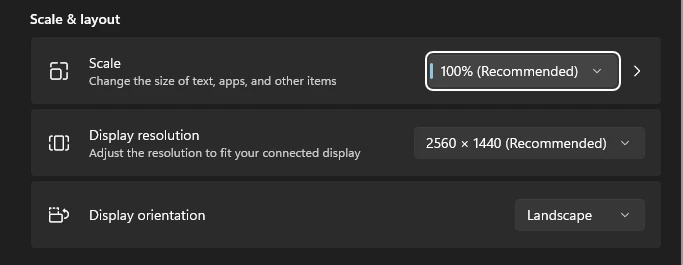 1. In Windows, turn off custom scaling and use one of the standard scaling options, or