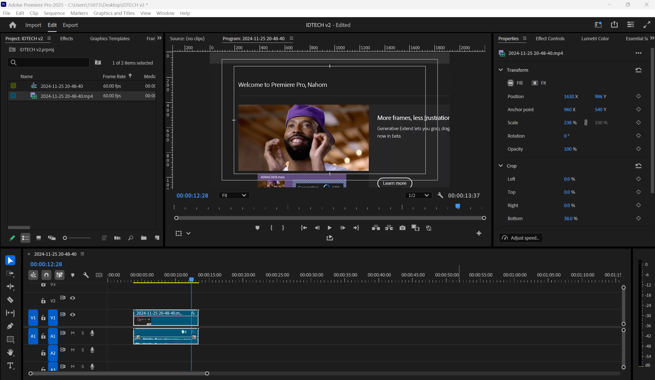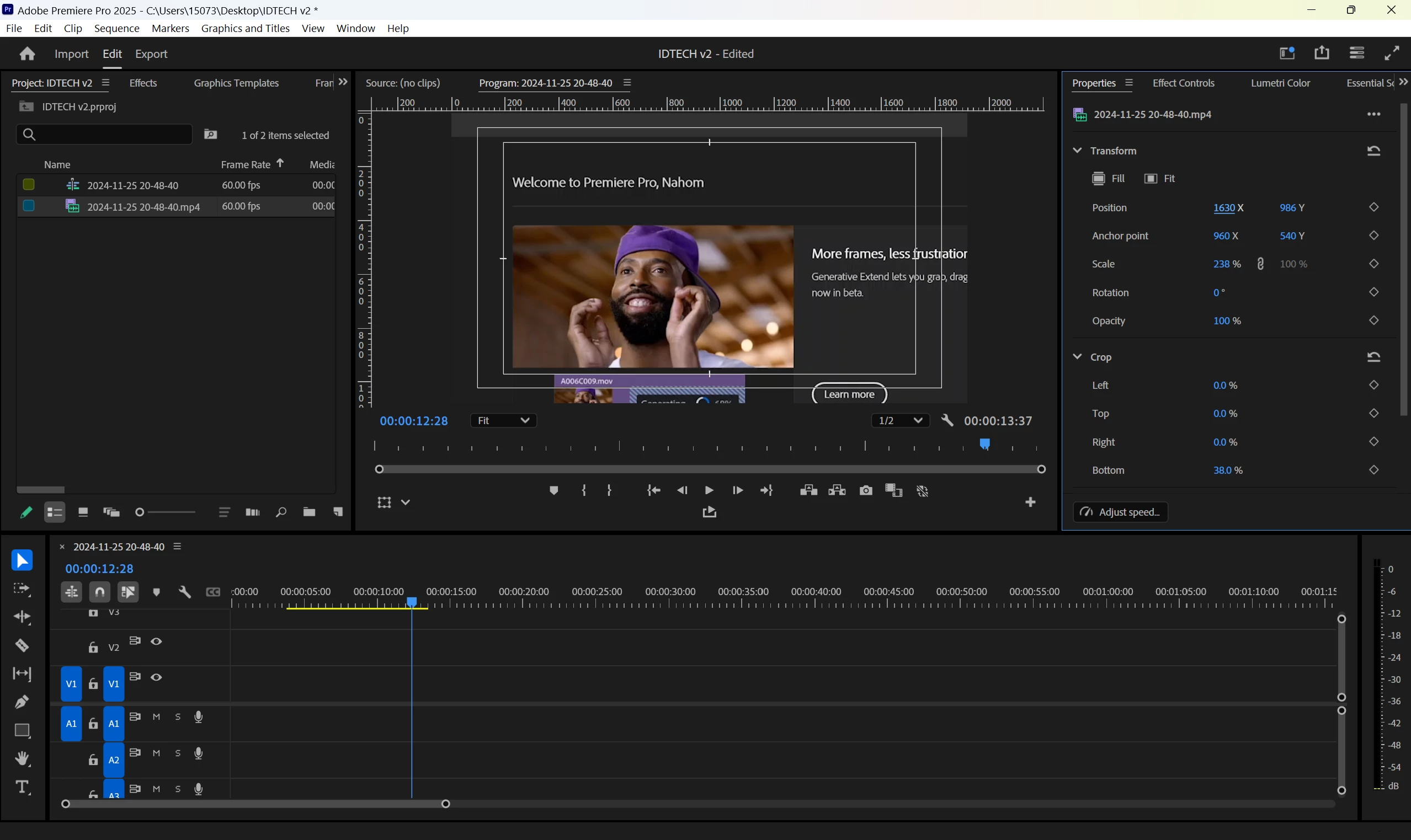 As you can see on the program monitor, I can look at the video I'm trying to edit but I can't see the clip. It would appear back again and if I shift or do something to it, it will disappear again. I've never had this issue in previous Premiere Pro versions and it's happening after updating it to V25. Does anyone have a solution for this? I've tried deleting my cache, reinstalling the software, changing to different workspaces but nothing seems to work. Thanks.