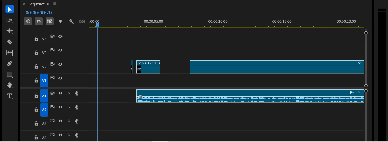2. Eine neue Sequenz erstellen und mehrere Clips auf der Timeline platzieren, insbesondere solche, die bei Sekunde 00:00 beginnen.