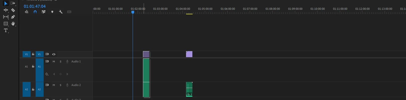 2. Deselect the source-side audio selectors on the sequence.