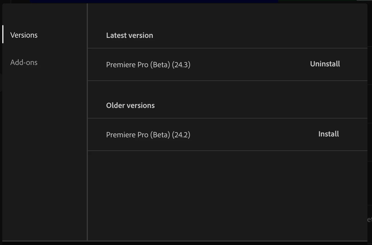 I couldn't download Premiere Beta 24. Mine version is 24.3