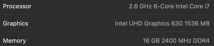 3,8 GHz Intel Core i7 8 cœurs