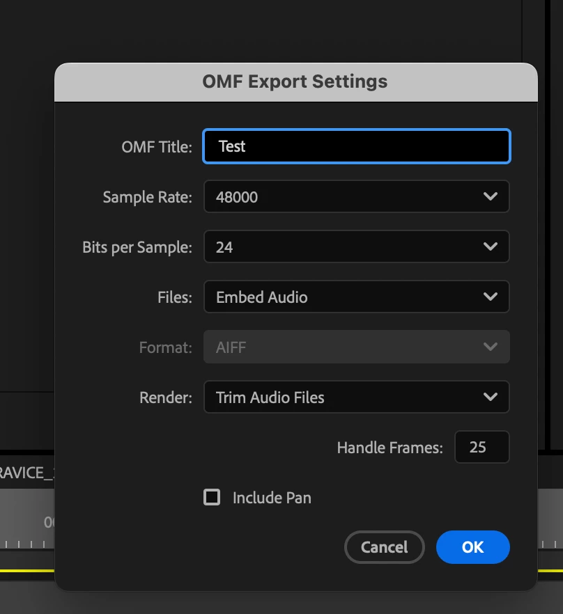 I’m running into a serious issue when exporting audio from the timeline to an OMF file in Premiere Pro version 25.1. The export technically completes, but the resulting OMF file is basically empty — it contains no audio clips or usable data.