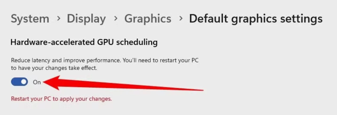 System - display - graphics - default graphics settings - GPU scheduling - OFF.