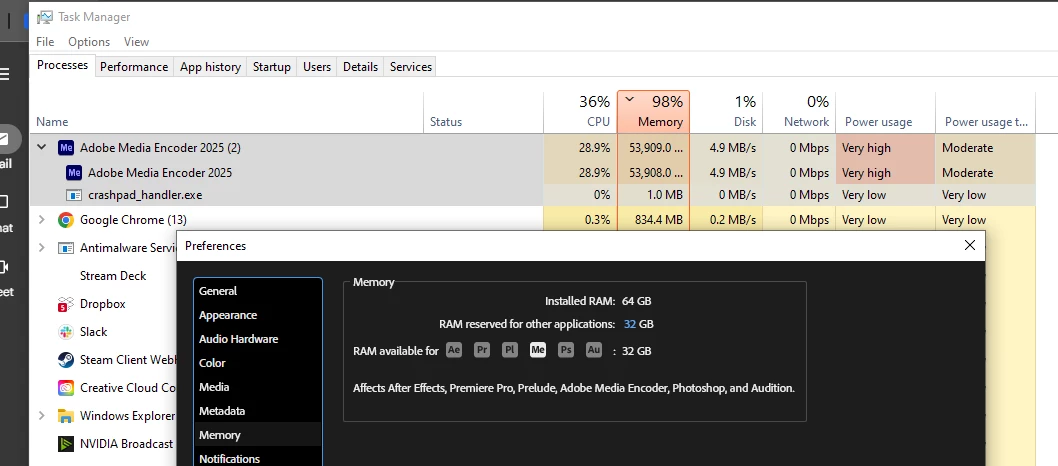 P: Premiere Pro v.25.4 'eats' memory