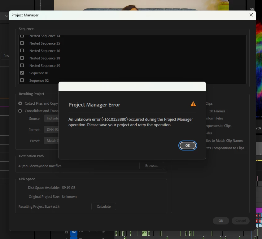 I’m experiencing an error in Premiere Pro that I can’t seem to resolve, despite trying all the recommended solutions I found on Google and YouTube. I believe it might be related to the new Premiere Pro 2025 update.